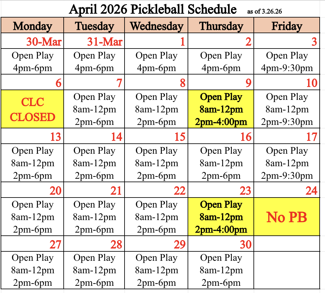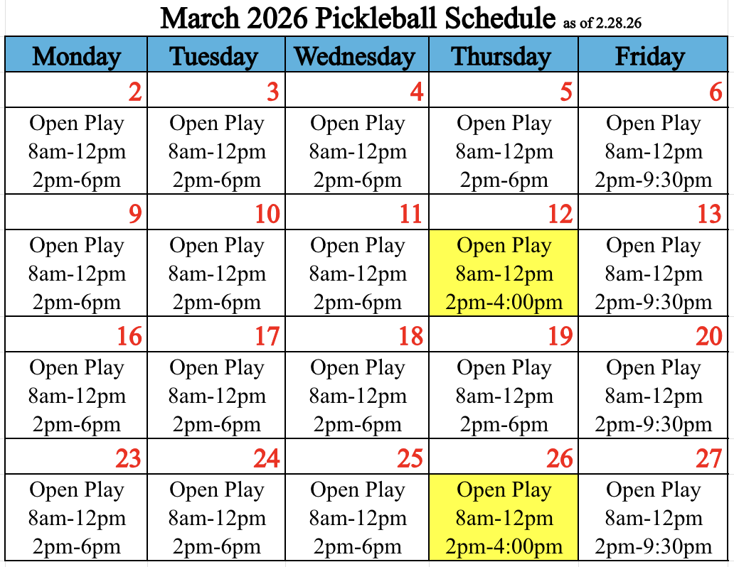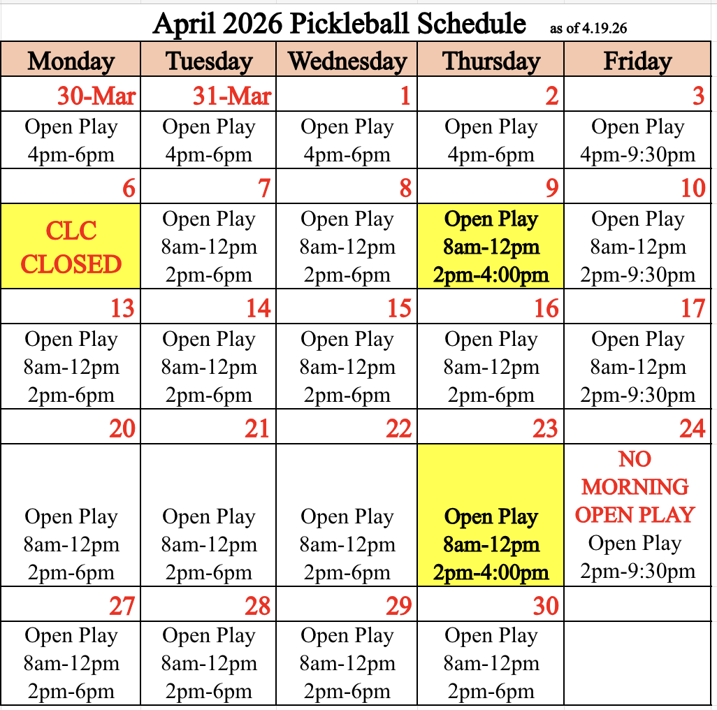 Pickleball Calendar