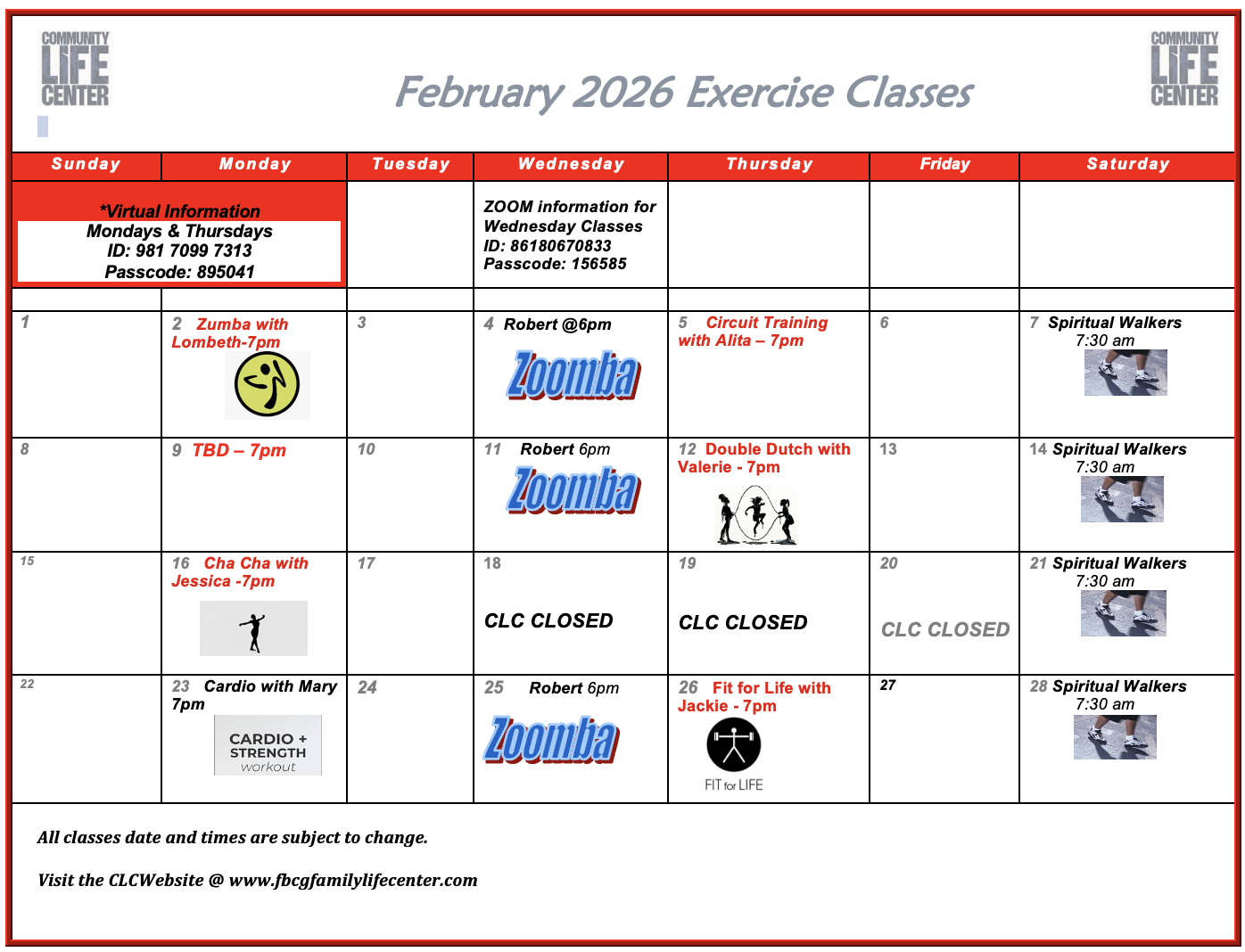 February 2026 Morning Fitness CLasses (Click Here to Register)