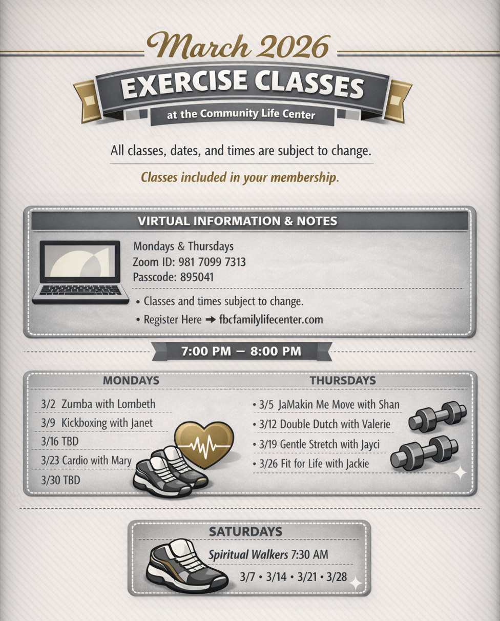 To use health and wellness as a tool to Develop "Fit and Healthy" Dynamic Disciples. The facility is available to members of First Baptist Church of Glenarden as well as the local community.