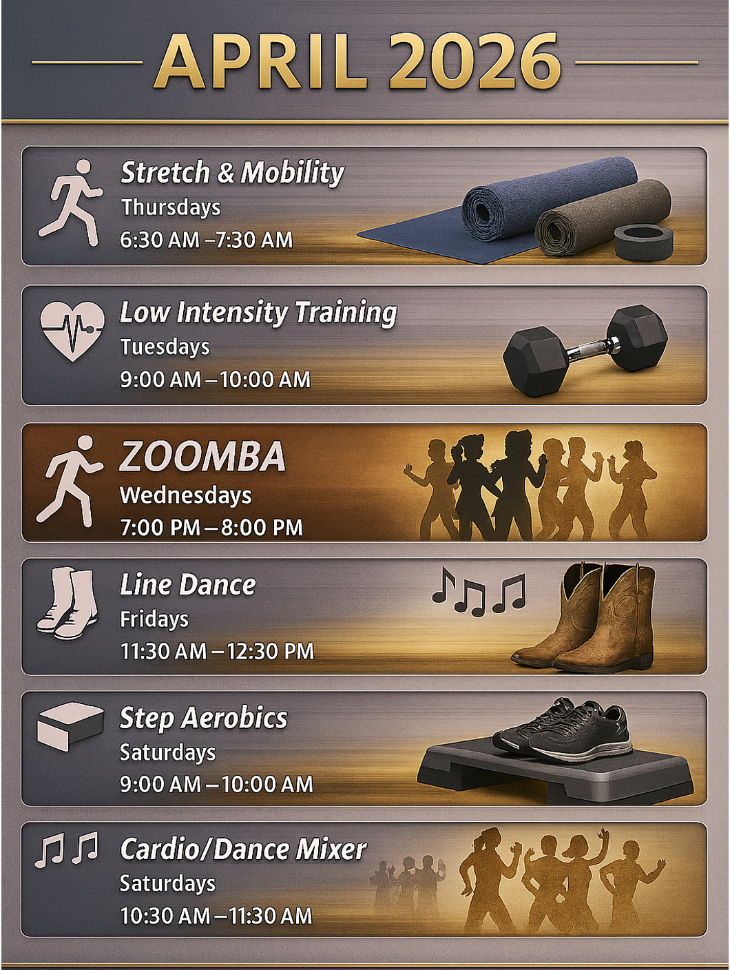 Step Aerobics, Saturdays @9am-10am